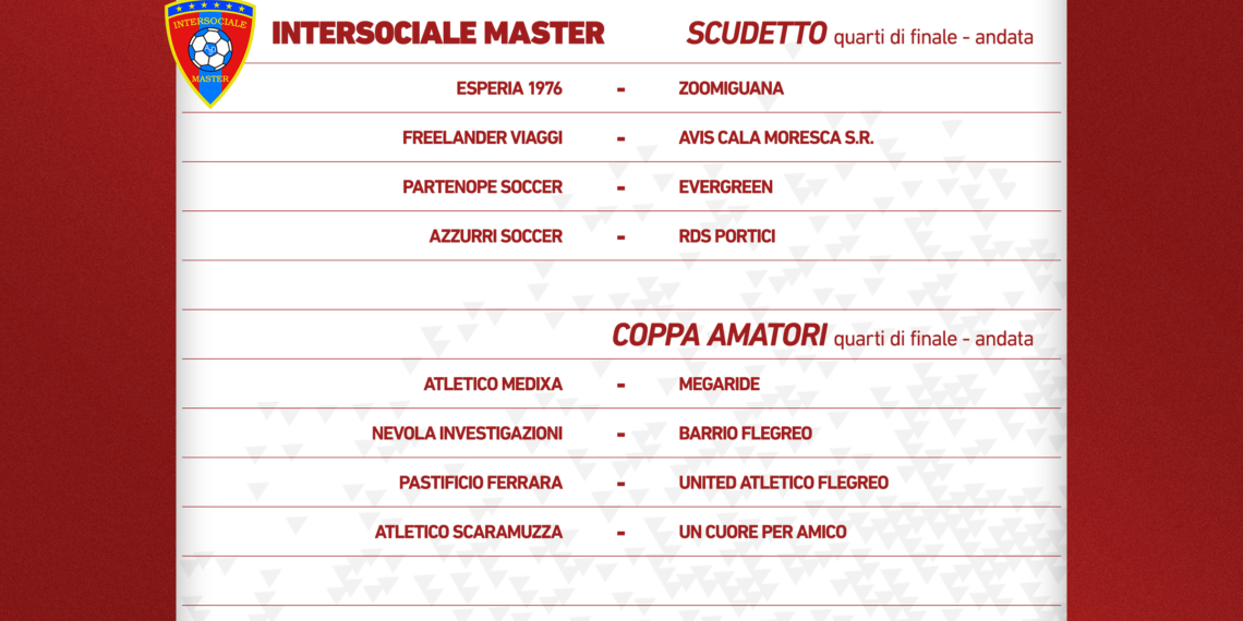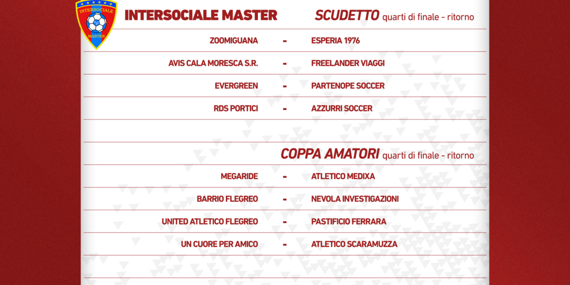 Intersociale Master Scudetto e Coppa Amatori, ritorno dei quarti di finale: il quadro gare